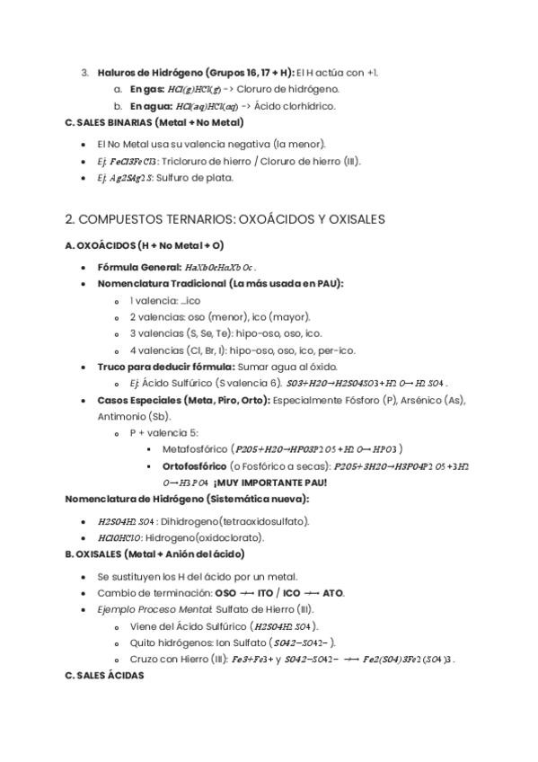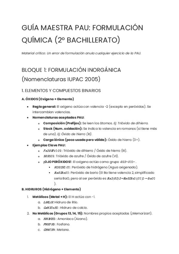GUÍA MAESTRA PAU: FORMULACIÓN QUÍMICA INORGÁNICA (2º BACHILLERATO) MUY BIEN EXPLICADO Y EJERCICIOS