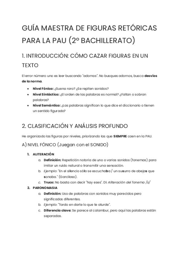 GUÍA MAESTRA DE FIGURAS RETÓRICAS PARA LA PAU (2º BACHILLERATO) QUÉ HACER SI DUDAS ENTRE FGURAS,M CÓMO IDENTIFICARLAS, TRUCOS Y NOTAS IMPORTANTES QUE NECESITAS TENER EN CUENTA