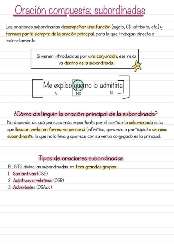 Apuntes fáciles y visuales de Castellano, oraciones subordinadas