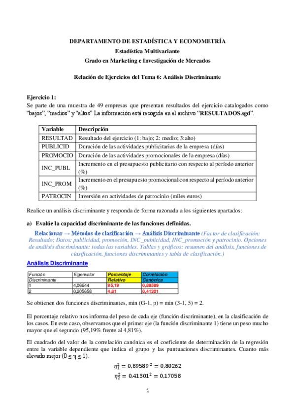 He publicado nuevos ejercicios de 3º Estadística Multivariante: Estadística multivariante