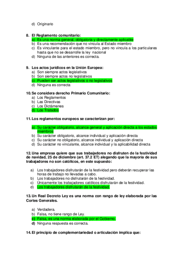 test derecho del trabajo I curso 2020
