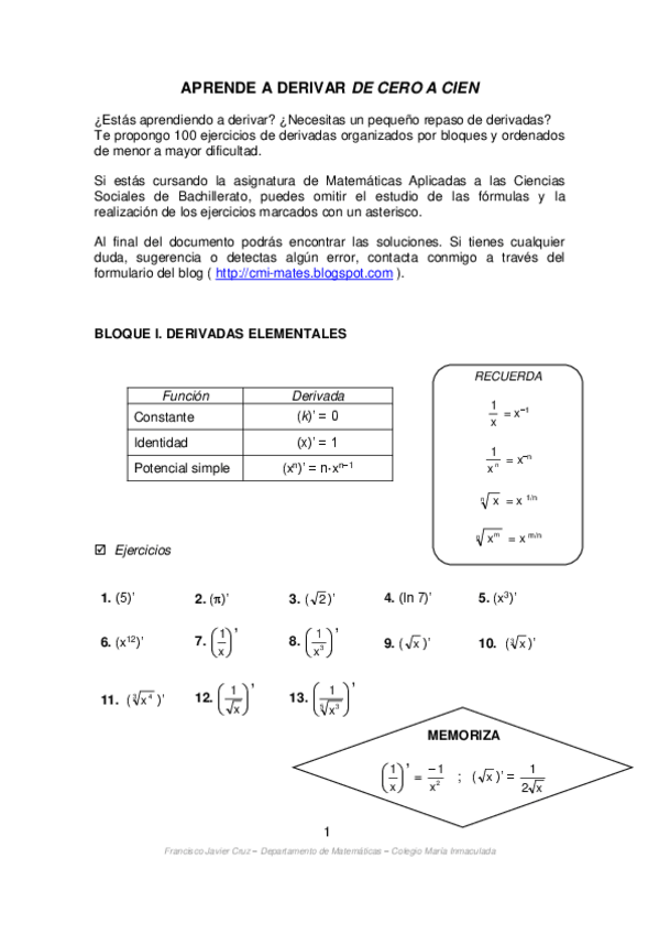He publicado nuevos apuntes de Matemáticas II: Derivadas