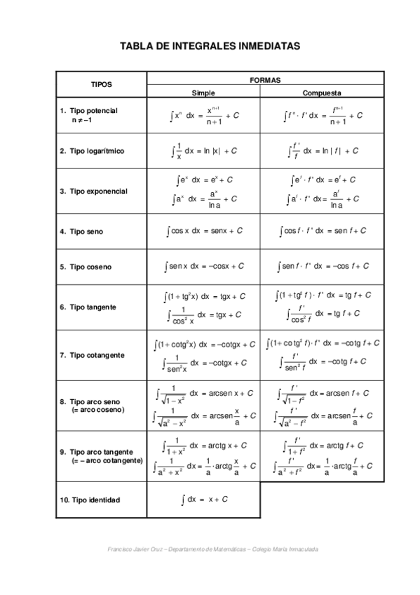 Integrales inmediatas