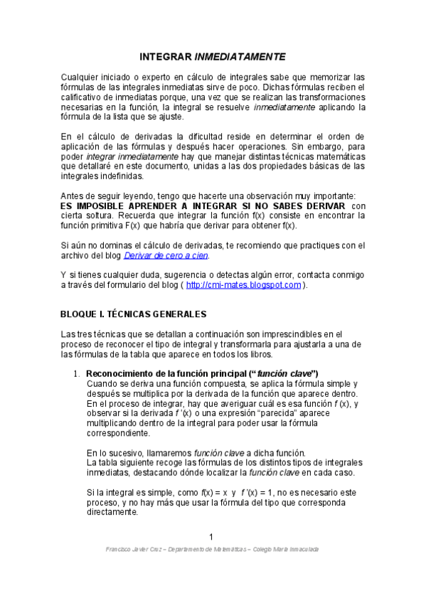 He publicado nuevos apuntes de Matemáticas II: Integrales inmediatas