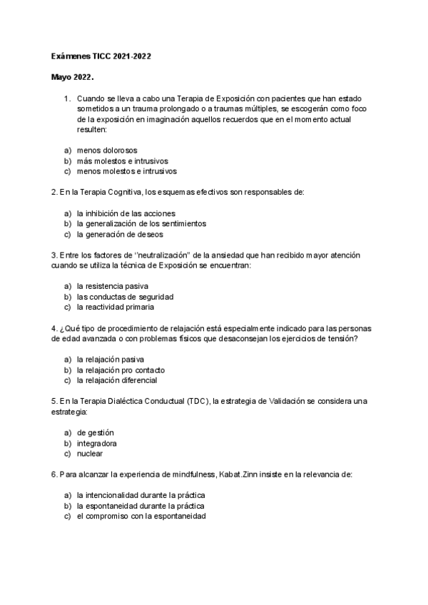 He publicado nuevos examenes de 3º Técnicas de Intervención Cognitivo-Conductuales: Examen-Mayo-2022-TICC.pdf