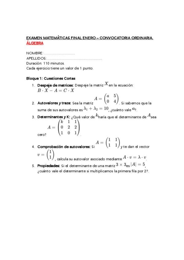 Os voy a ir subiendo ahora examenes de matemáticas de la parte de álgebra