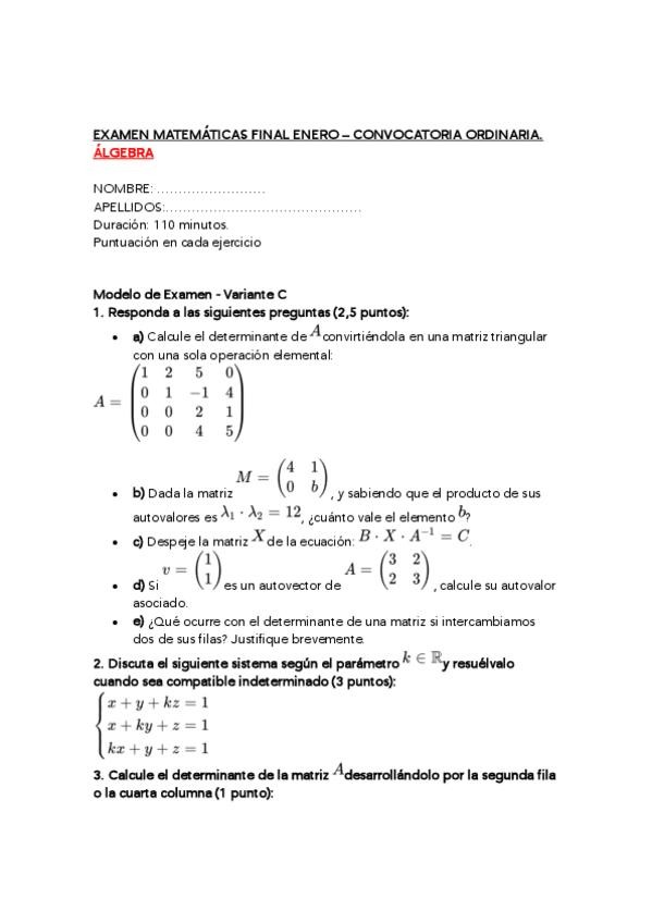 Os he subido 4 modelos de examen de algebra, si quereis también de la parte de calculo decirmelo y lo subo, o también apuntes de ambas partes