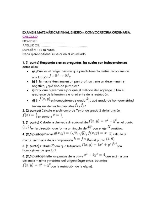 He subido 3 modelos de examen de la parte de cálculo