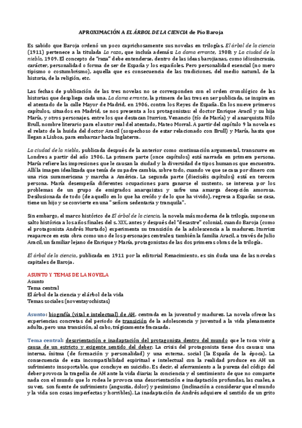 He publicado nuevos apuntes de Lengua Castellana y Literatura II: ÁRBOL DE LA CIENCIA
