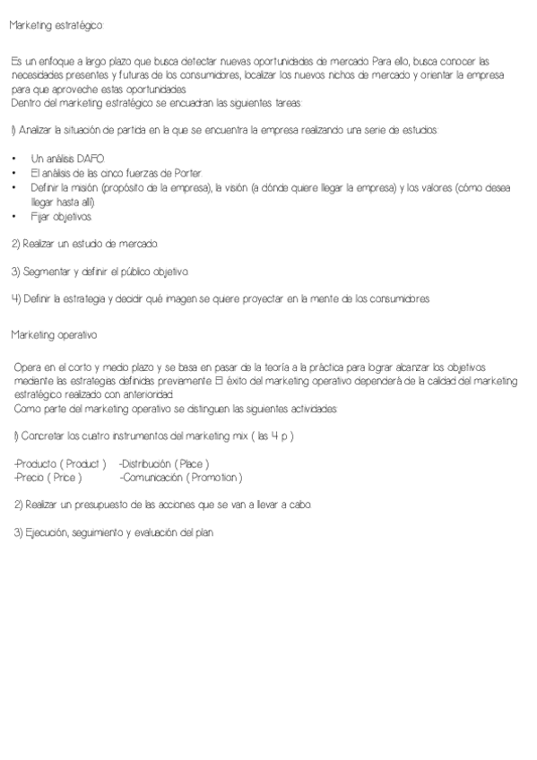 Marketing, estudio del mercado, segmentación, posicionamiento… )