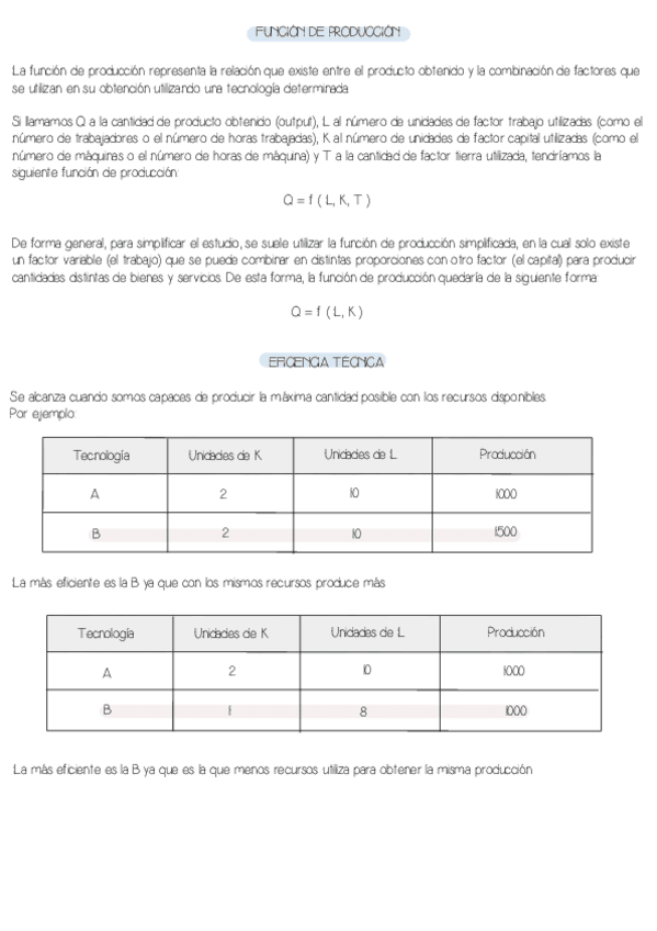 Función productiva, eficiencia técnica y económica, umbral de rentabilidad y producción, gestión de inventarios …