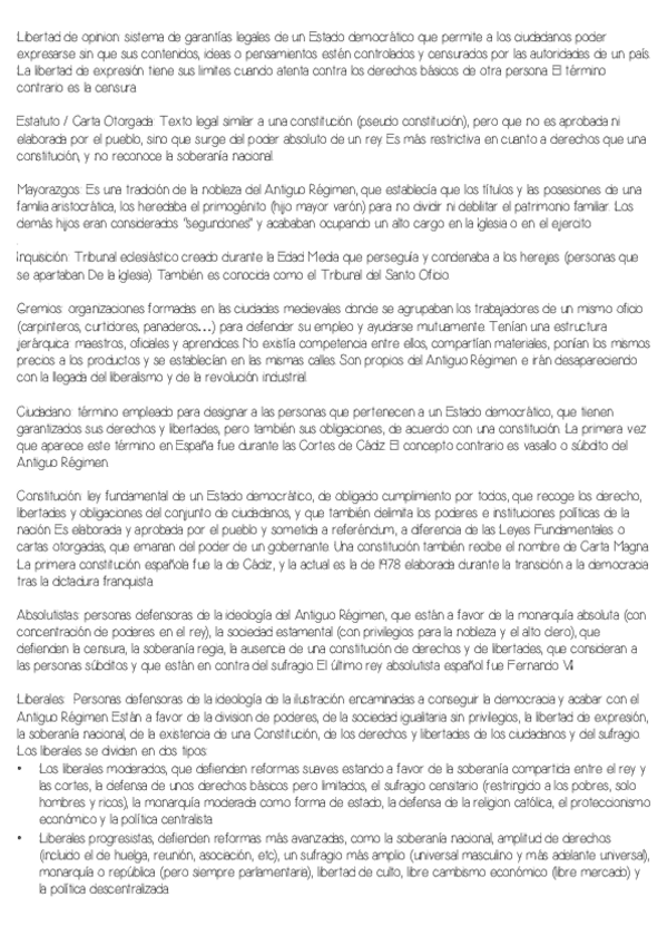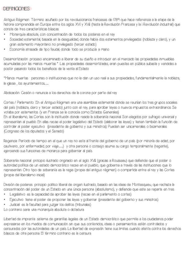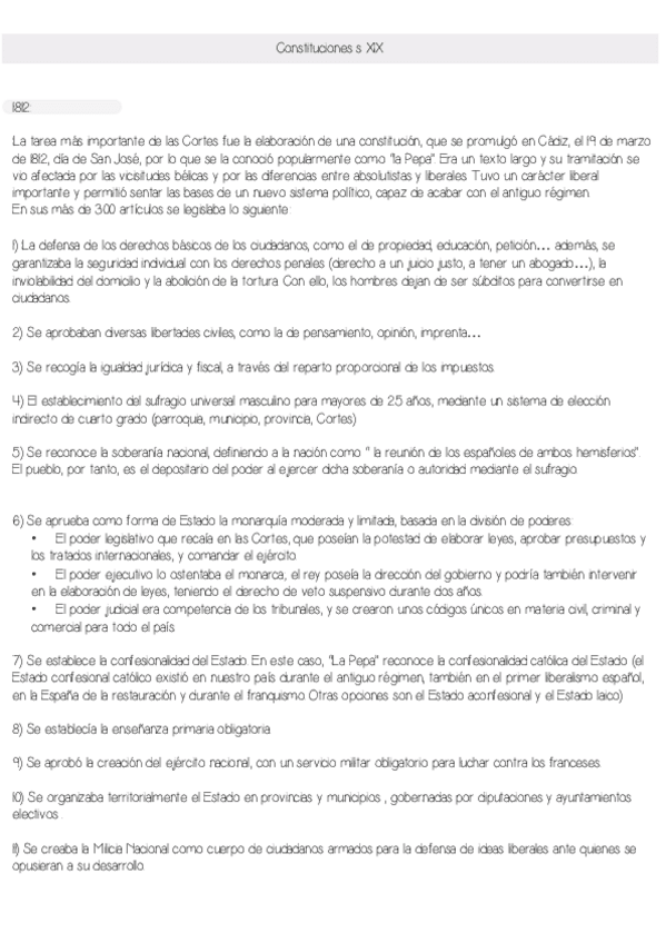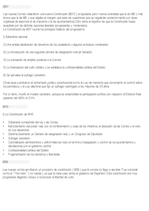 Material de las constituciones del s.XIX, a modo de esquema y más desarrollado