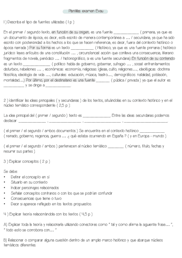Plantillas para la clasificación de textos y para contextos de españa e incluso internacionales para selectividad