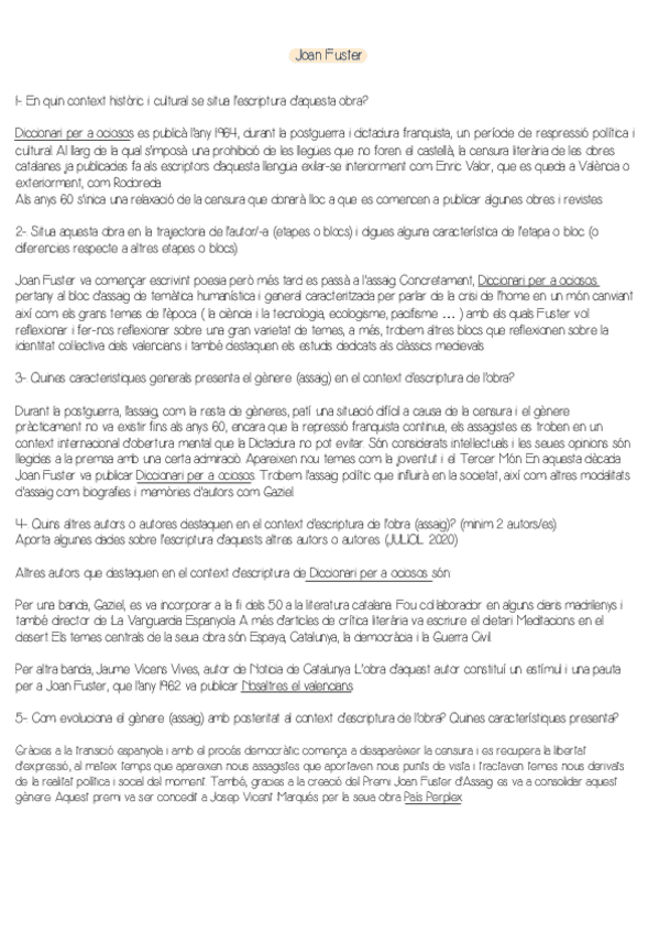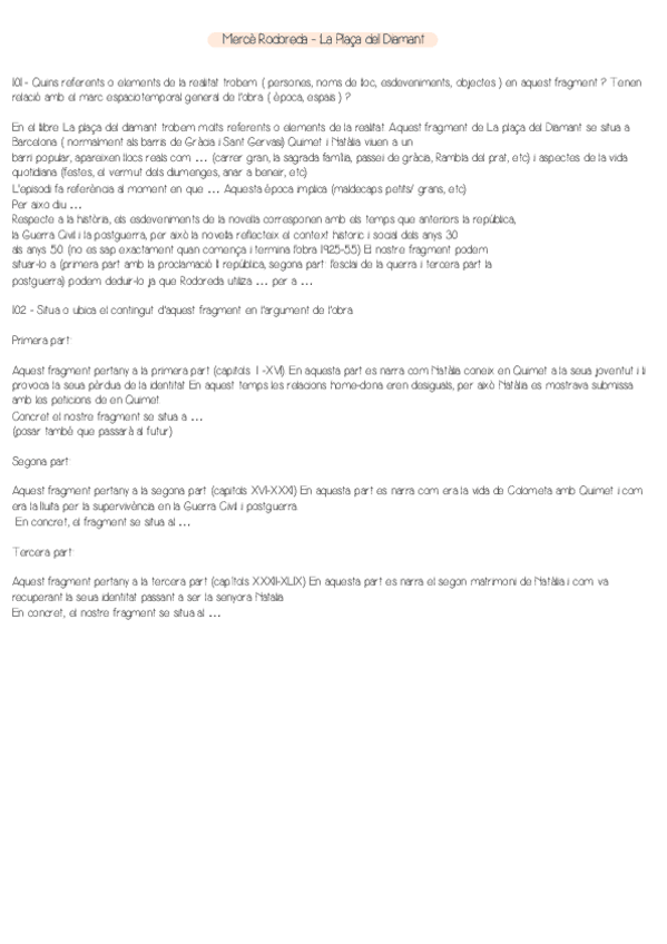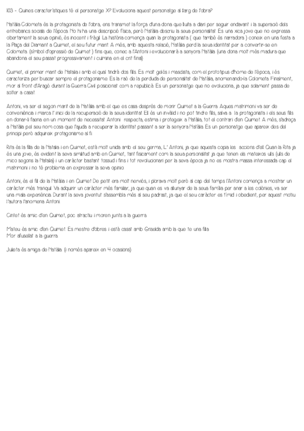 Preguntas de selectividad respecto a la literatura de Rodoreda contestadas tanto del bloque A como del bloque B