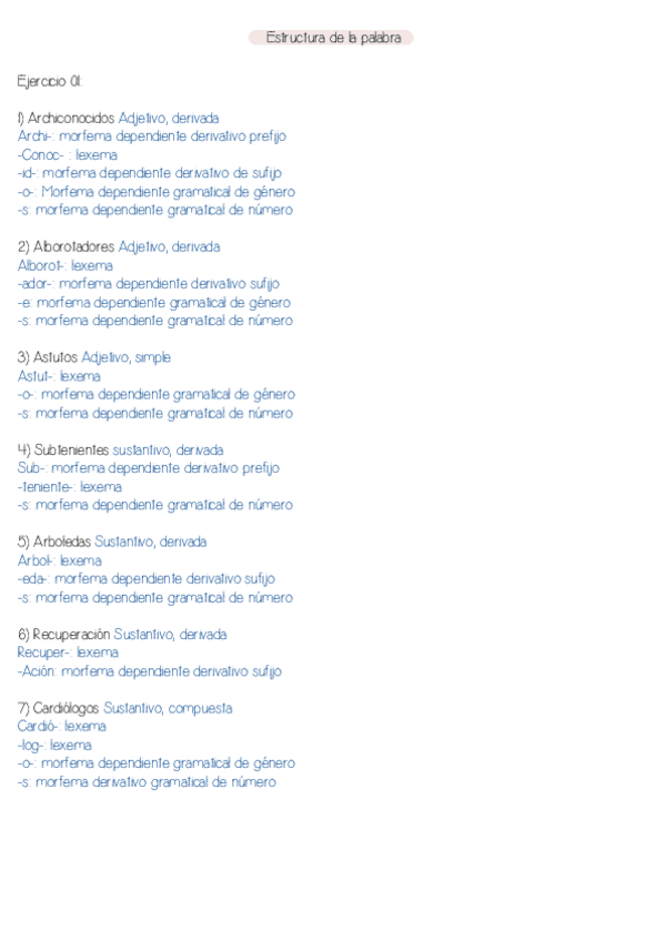 Palabras corregidas ( estructura de la palabra ), ejemplos corregidos