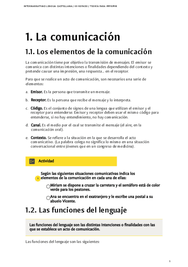 APUNTES: La comunicación, las funciones del lenguaje, la narración y el sustantivo