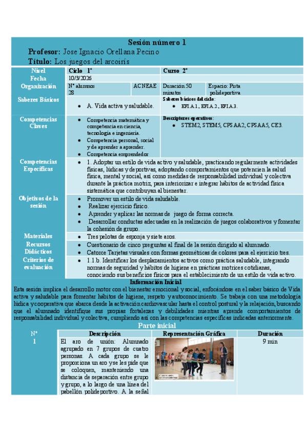 Trabajo sobre sesión de educación física a realizar en las prácticas de la asignatura.