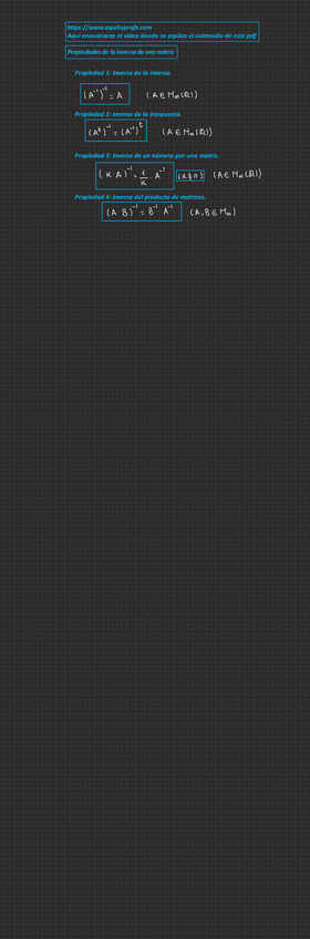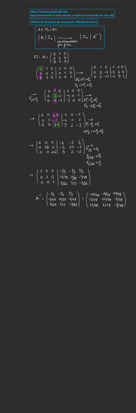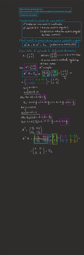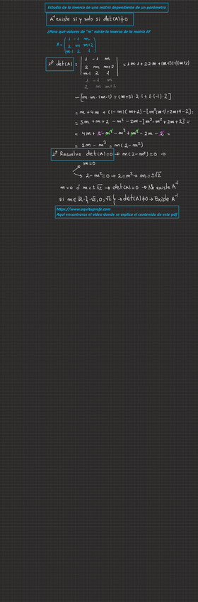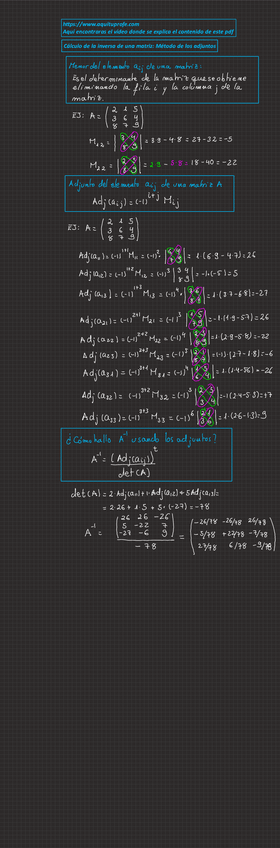 Apuntes completos de Inversa de una matriz con enlace a web donde ver los vídeos del profesor