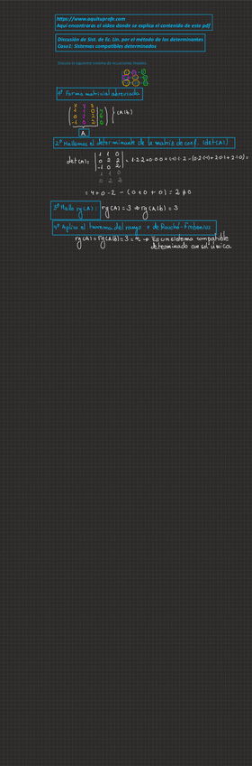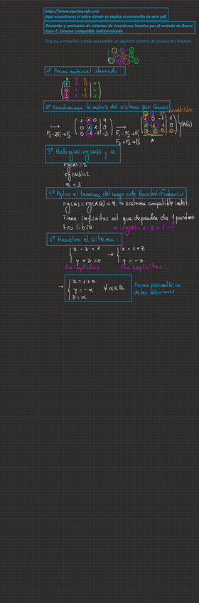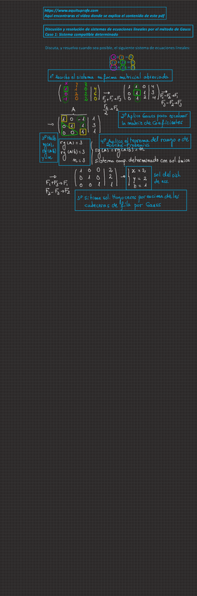 Apuntes completos de Sistemas de ecuaciones lineales con enlace a web donde ver los vídeos del profesor