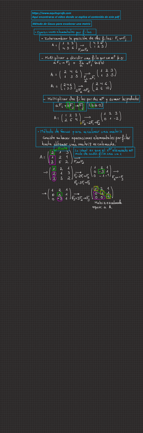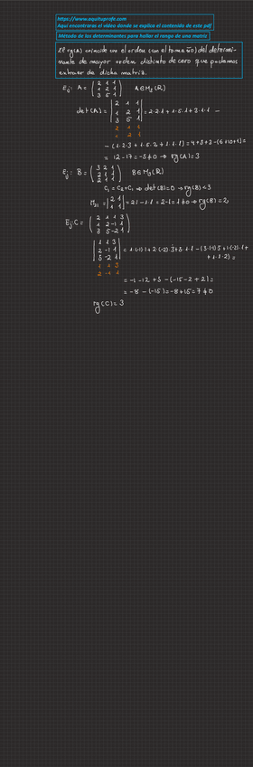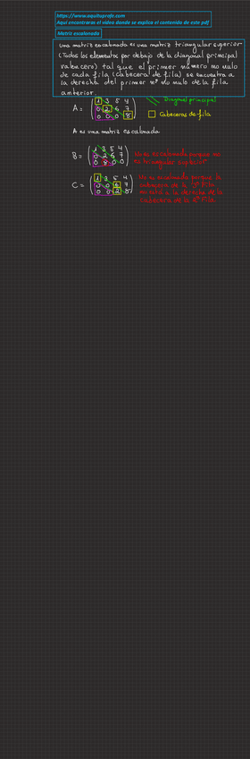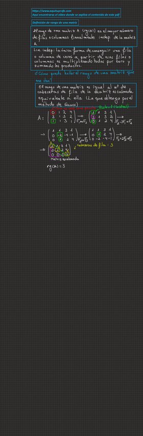 Apuntes completos de rango de una matriz y matriz escalonada con enlace a web donde ver los vídeos del profesor