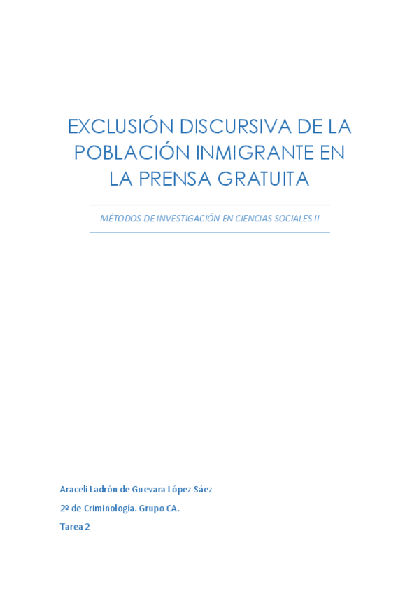 He publicado nuevos apuntes de 1º Métodos de investigación en ciencias sociales I: EXCLUSIÓN DISCURSIVA DE LA POBLACIÓN INMIGRANTE EN LA PRENSA GRATUITA.pdf