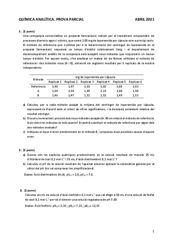 He publicado nuevos ejercicios de 2º Química Analítica: Problemes analítica