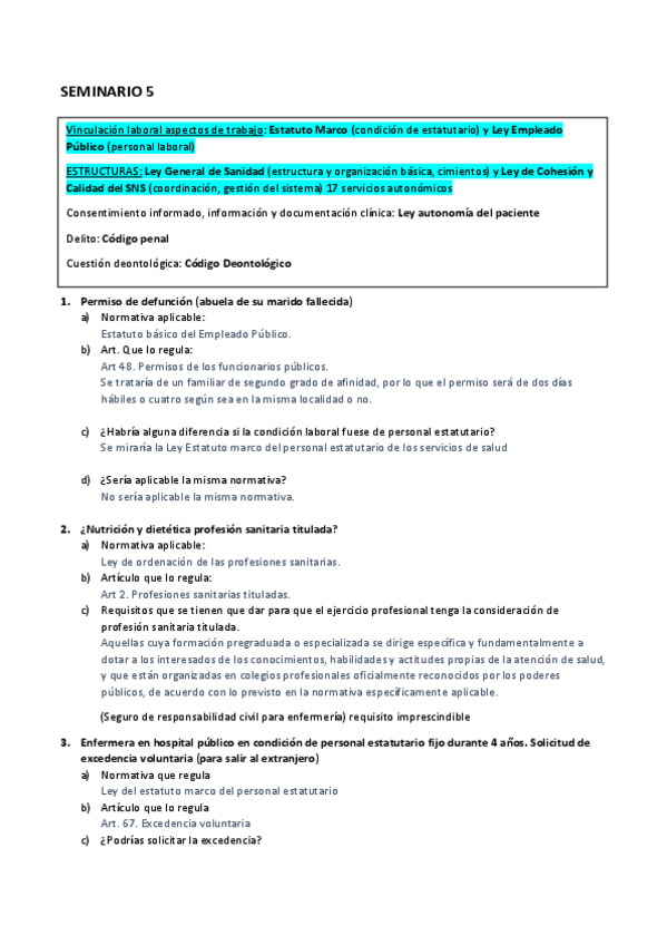 He publicado nuevos practicas de 2º Legislación y Ética Profesional: SEMINARIO 5 (Simulación Examen Seminarios).pdf