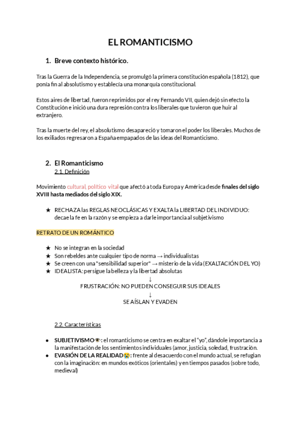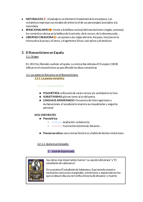 El romanticismo, características, la poesía romántica, José de Espronceda, Bécquer, Rosalía de castro, prosa romántica, teatro romántico, José Zorrilla