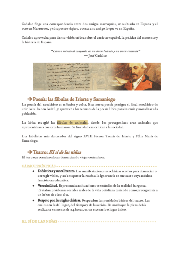 Características, José Cadalso, Fabulas de Iriarte y Samaniego, El sí de las niñas