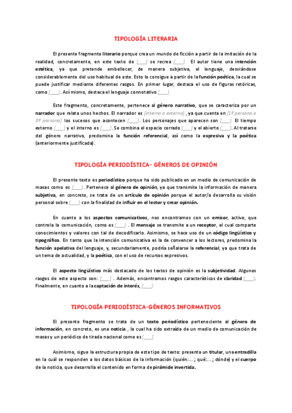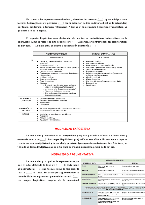 Tipología literaria, periodística Modalidad expositiva, argumentativa, descriptiva, narrativa