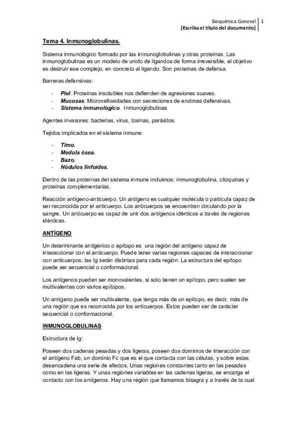 He publicado nuevos apuntes de 1º Bioquímica General: Tema 4. Sistema inmunologico.pdf
