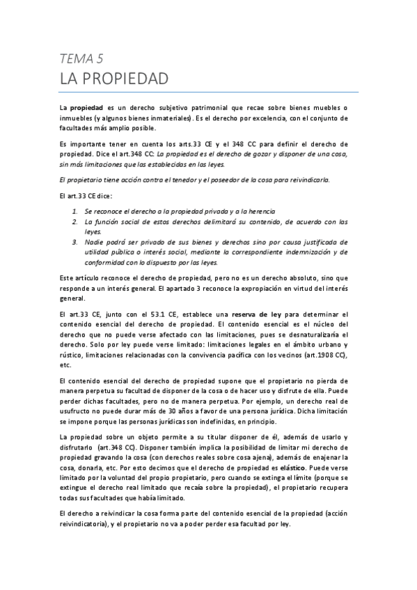 He publicado nuevos apuntes de 3º Derechos Reales: Tema 5. La propiedad.pdf