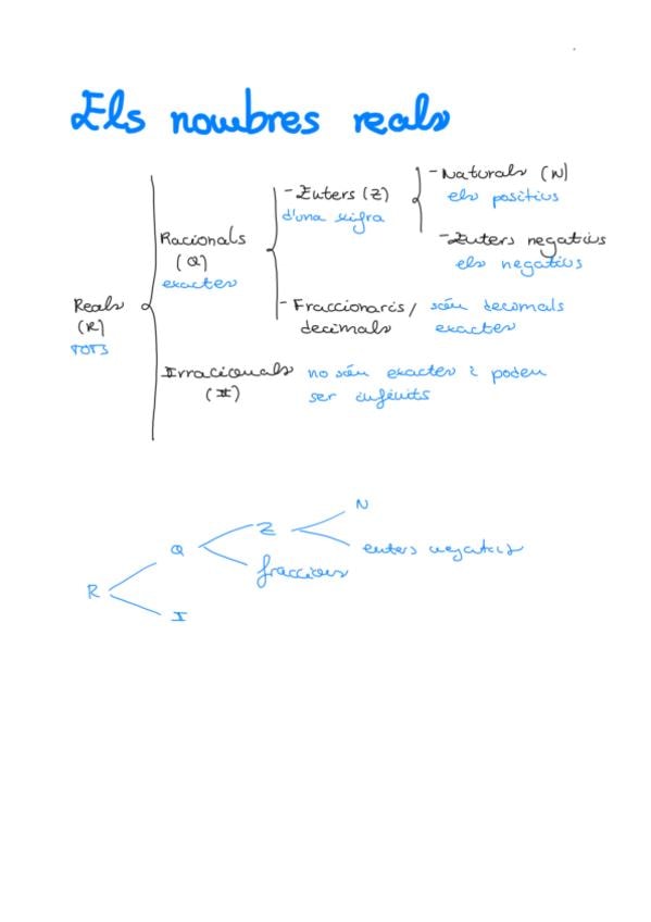 Exquema nombres enters, desglossat en racionals e irracionals, enters i fraccionaris o decimals i naturals i enters negatius. Molt bé esquematitzat