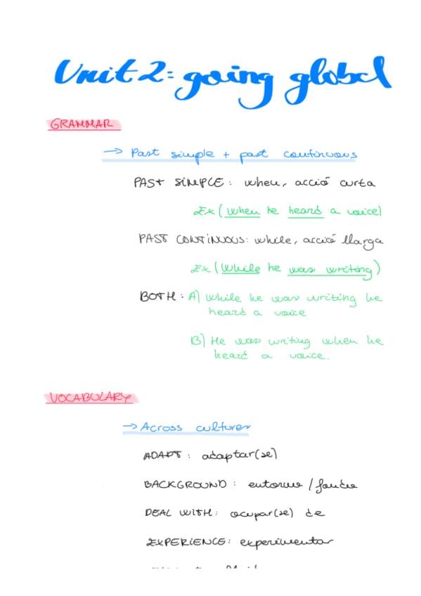 Incluye: Grammar (Past simple + past continuous) and vocabulary (across cultures and travel) TODO EXPLICADO, RESUMIDO y TRADUCIDO