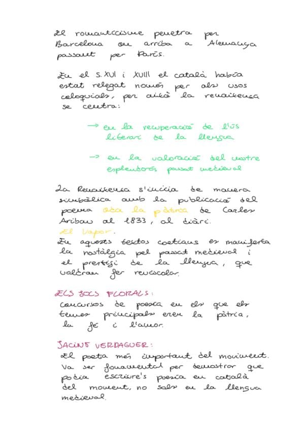 Inclou: el romanticisme, la renaixença, la renaixença valenciana, Teodor Llorente i Eduard Escalante Molt ben resumit i explicat, inclou lo bàsic més sabers importants per al exàmen