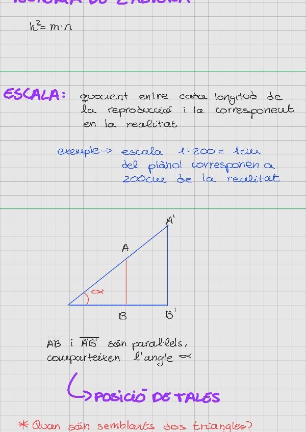 Explicació semblança: teorema catet, teorema de l'altura, l'escala, teorema de tales, criteris de semblànça,...