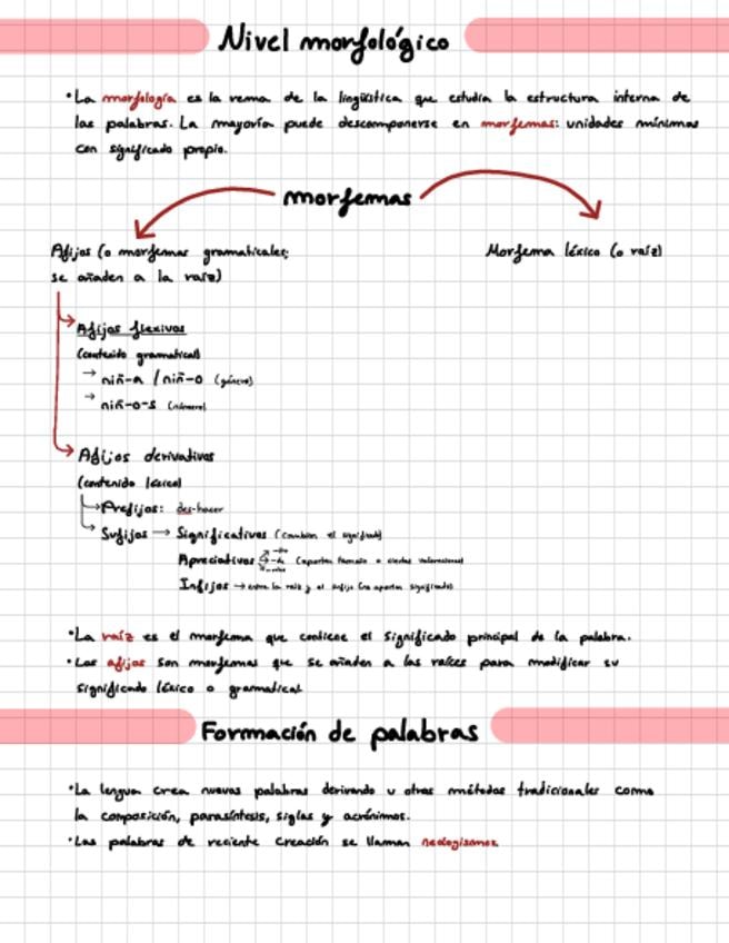 Apuntes del Nivel Morfológico y semántico. Castellano segundo de bachillerato. Incluye: - Morfemas: afijos flexivos y derivativos - Formación de palabras: derivación, composición, parasíntesis, siglas y acrónimos. - Fenómenos semánticos: homonimia, hipero