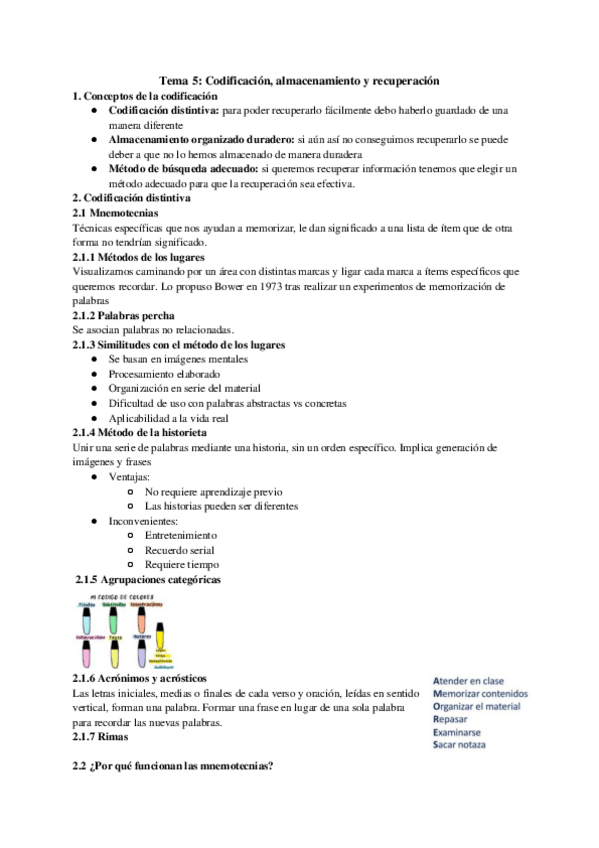 He publicado nuevos apuntes de 1º Psicología de la Memoria: Memoria