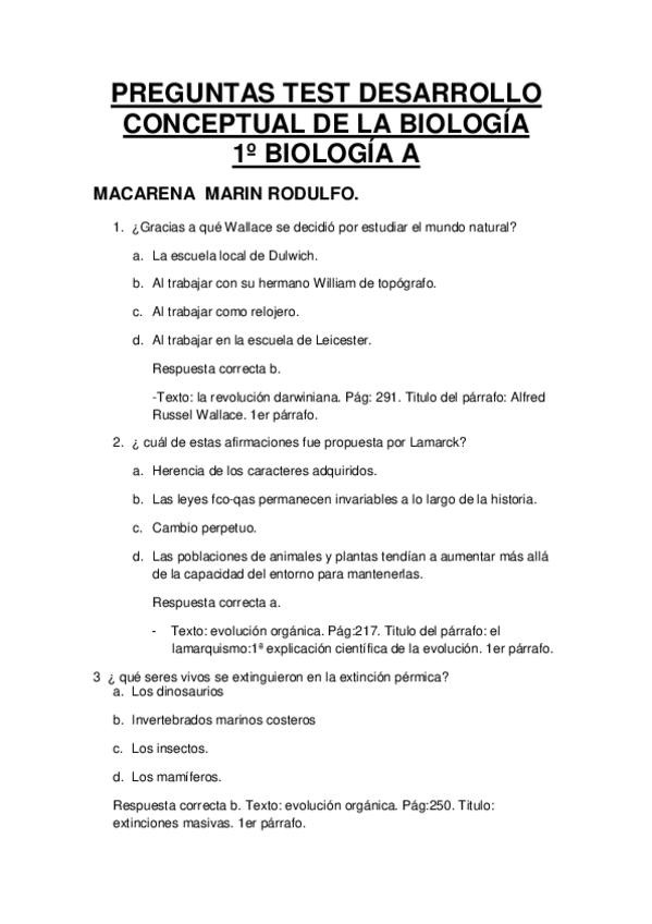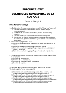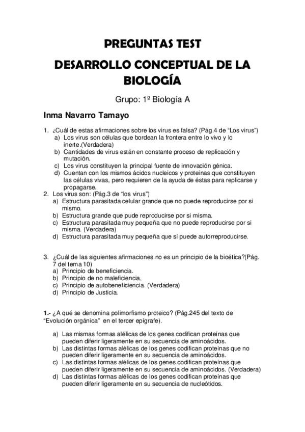 He publicado nuevos test de 1º Desarrollo Conceptual de la Biología: Relación de Preguntas Tipo Test