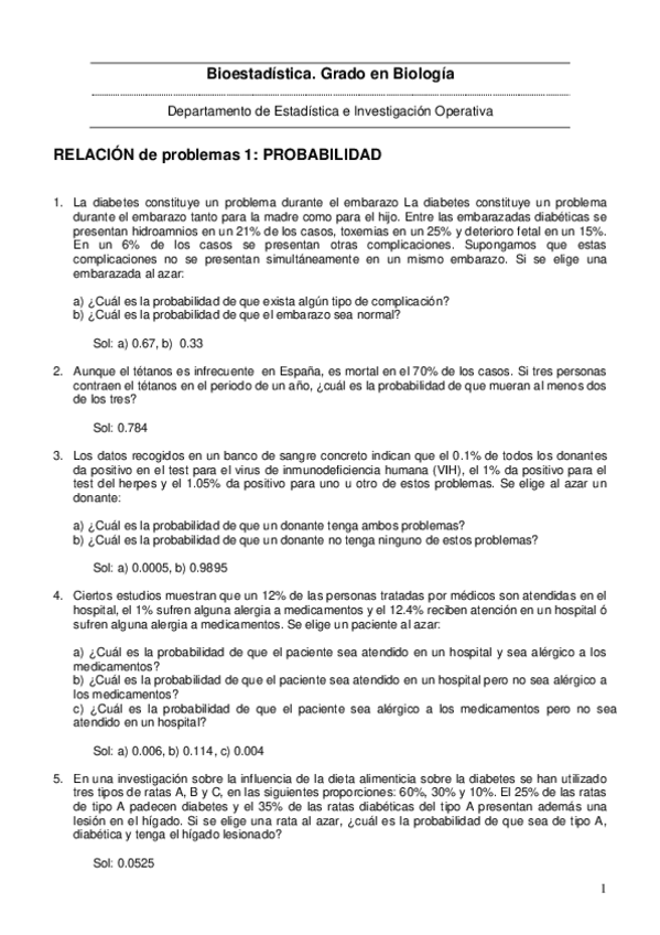 He publicado nuevos ejercicios de 1º Bioestadística: Relación de Ejercicios