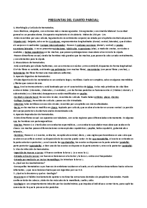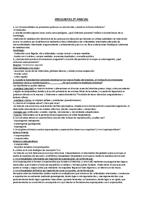 He publicado nuevos examenes de 4º Parasitología: Preguntas Parciales Resumidas
