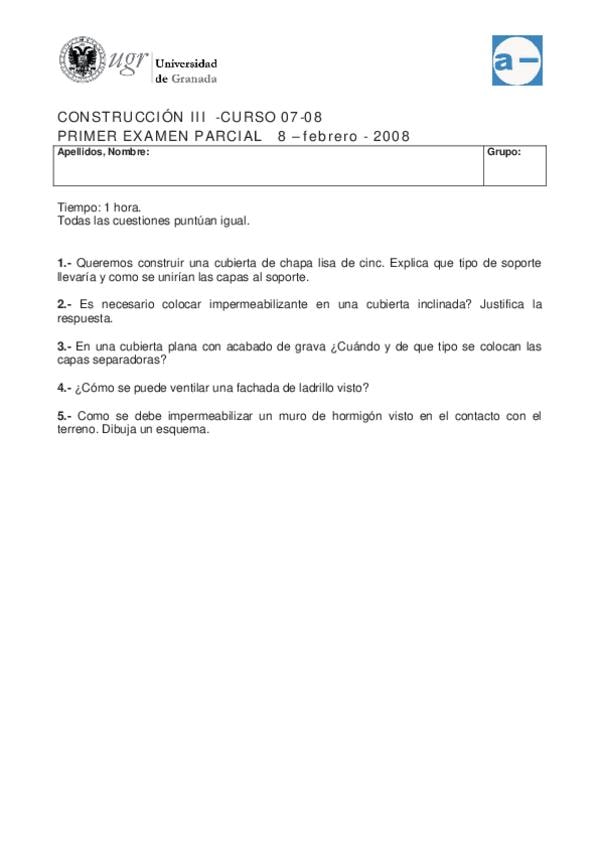 He publicado nuevos examenes de 4º Construcción 3: Sistema Envolvente (Fachada y Cubierta). Sistema de Compartimentación Interior y Revestimientos: 2010_SEPTIEMBRE.pdf