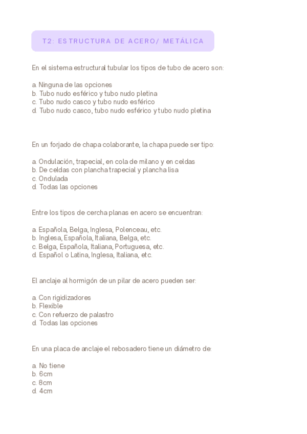 Recopilación de preguntas tipo test de exámenes de Sistemas Constructivos II :)