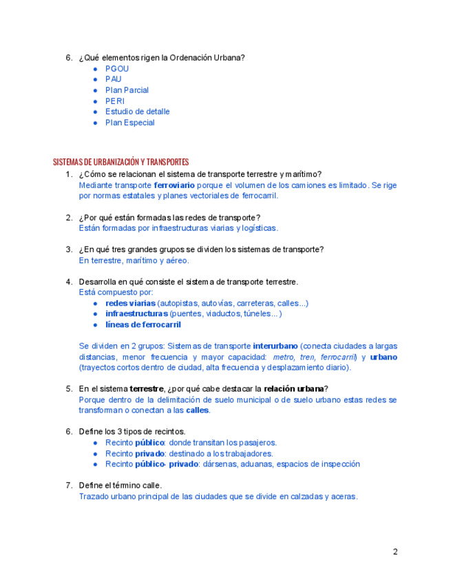 Q&A de instalaciones urbanas que el profesor ha recalcado en clase!