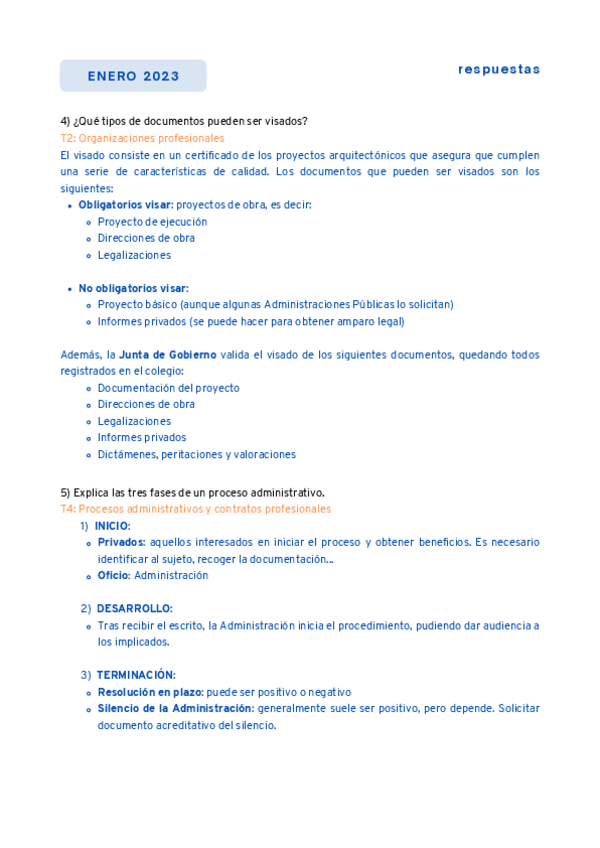 Preguntas resueltas de la parte teórica del examen de enero 2023