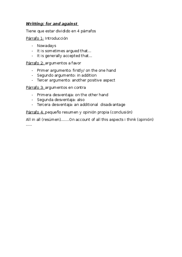 He publicado nuevos apuntes de 1º Inglés I: For-and-against-writting.docx