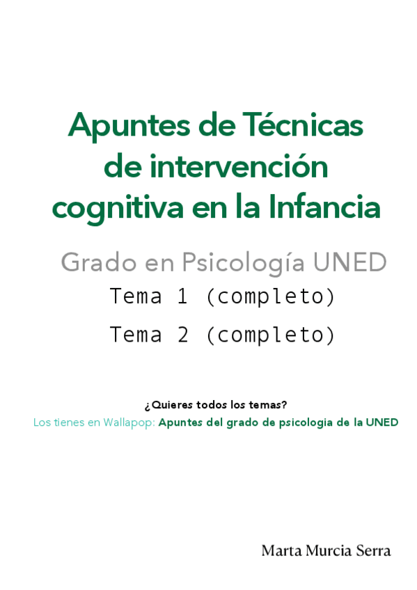 Aquí tienes los temas uno y dos completo de la asignatura de técnicas intervención cognitivo-conductual, si te han gustado estos apuntes, puedo darte el resto.