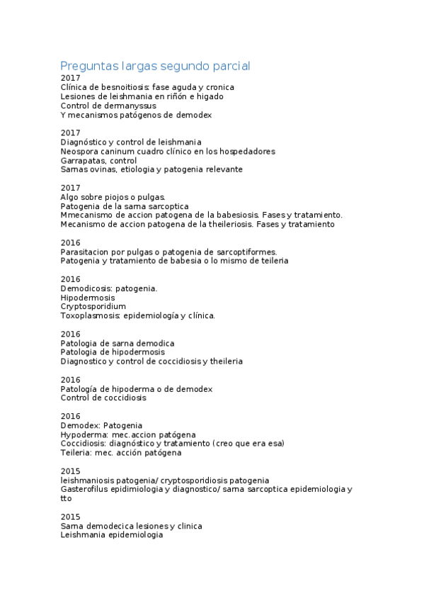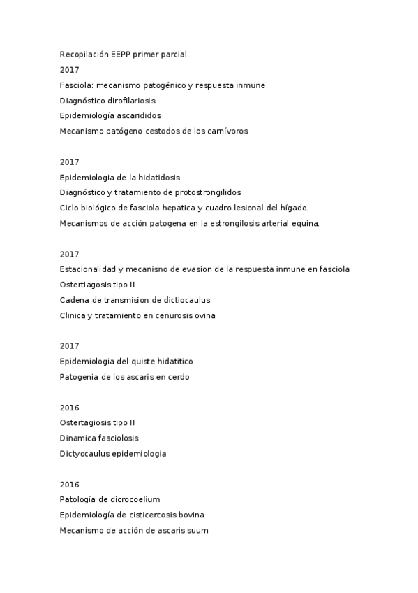 He publicado nuevos examenes de 3º Enfermedades Parasitarias: Recopilación Largas EEPP primer parcial.docx