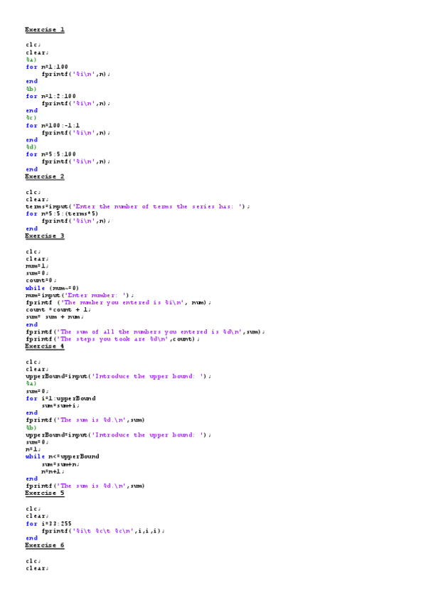Exercises all course