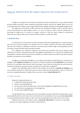 He publicado nuevos apuntes de 3º Patología Molecular: 22. Radicales libres del oxígeno. Bioquímica del envejecimiento.pdf